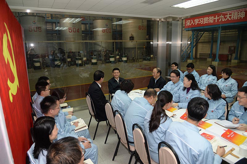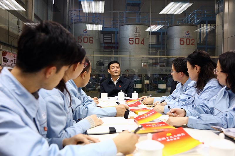 肖亚庆主任在调合车间学习室,参加了基层十九大精神现场学习交流会,来自基层的党员和员工分别就“不忘初心、牢记使命”“创新驱动发展”“打造具有国际竞争力的世界一流企业”“贯彻‘一带一路’战略 谋求国际市场开拓新突破”“企业在推进供给侧改革中应发挥作用”“打造世界一流品牌”“加强基层党建工作”“美好生活的新期待”等话题,畅谈了学习党的十九大精神的深刻认识、切身体会与未来打算,并与会的同志就打造具有国际竞争力的世界一流企业、中央企业联手提振中国制造、中国品牌的世界影响力等话题进行了互动解答。